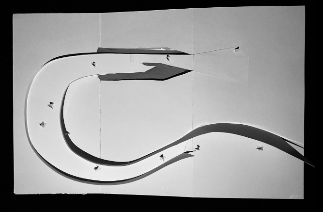 Inspirado no livro “Maquetes de papel” de Paulo Mende da Rocha, o método de corte e dobra consiste em projetar a partir de rápidas maquetes de papel a fim de desatar amarras formais de projeto.